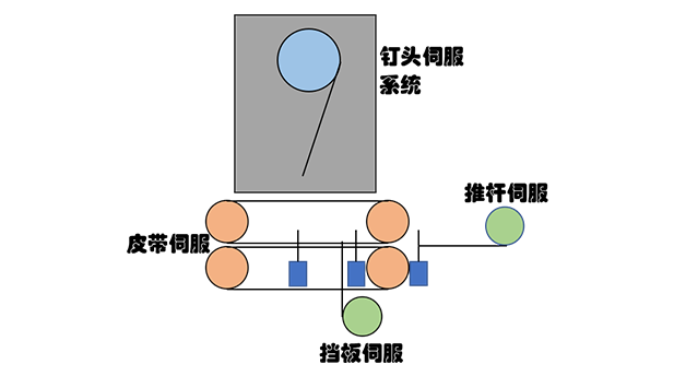 全自動粘釘一體機釘箱部分方案,采用5軸聯動的運動控制方案,極大的提高了生產效率。
